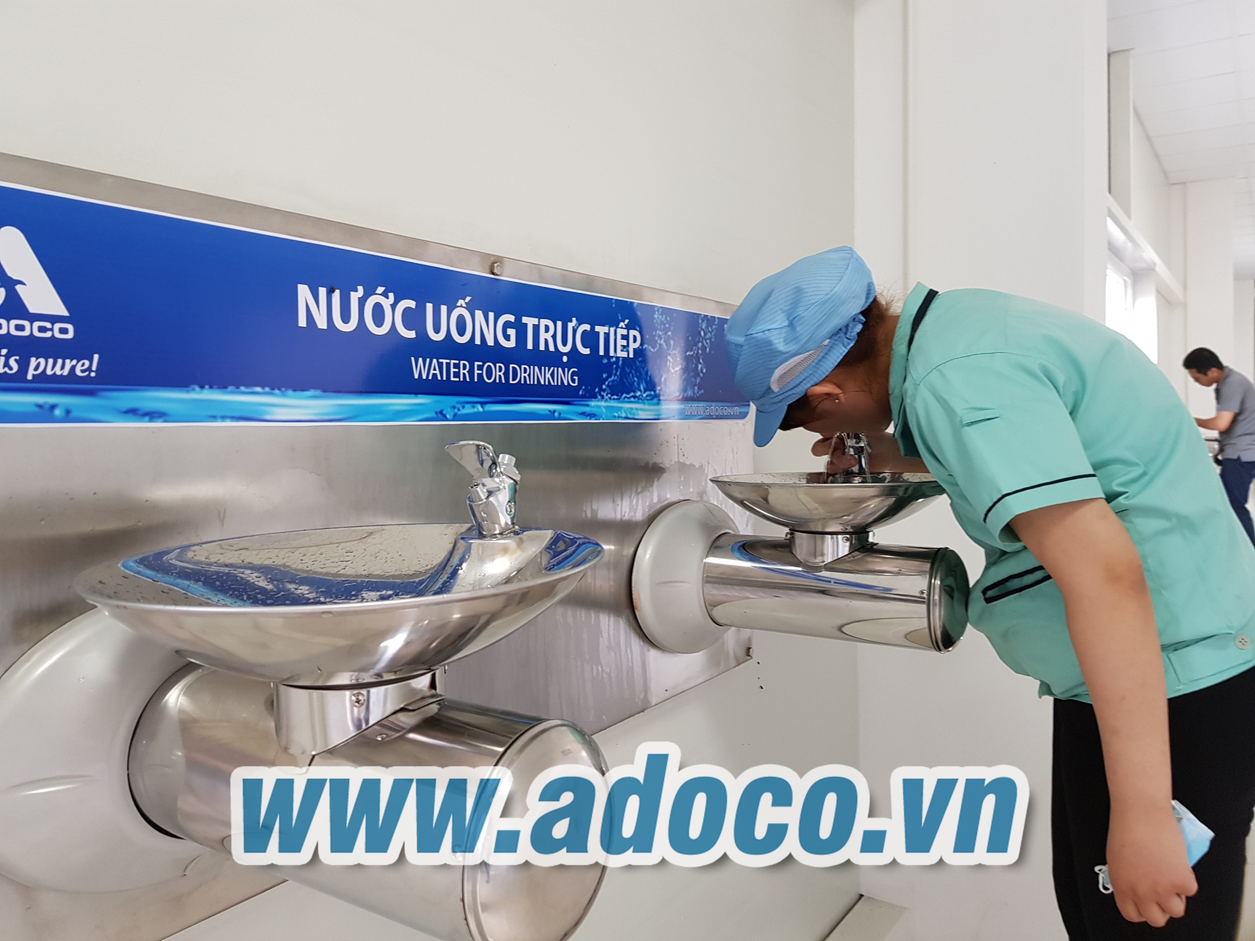 Chính vì vậy, để đảm bảo tốt nhất cho sức khỏe nhân viên và sử dụng nguồn nước hiệu quả - kinh tế, các công ty Nhật, Hàn tại các khu Công nghiệp đã và đang áp dụng giải pháp thuê hệ thống lọc nước tinh khiết đưa ra các điểm cấp nước UỐNG TRỰC TIẾP TẠI VÒI - KHÔNG CẦN CỐC do ADOCO cung cấp.